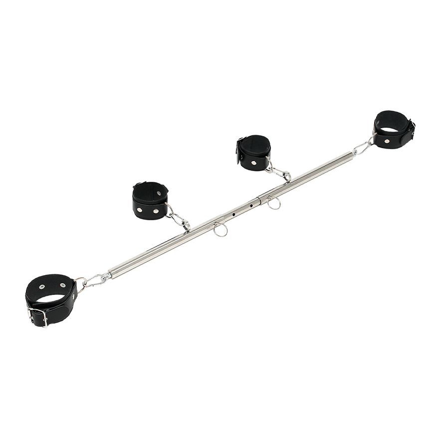Wer besonders unartig war und bestraft werden muss, kann mit dieser Spreizstange effektiv fixiert werden. Die dreiteilige Metallstange kann von 55 bis 85 Zentimeter eingestellt werden. Der mittlere Teil wird dazu bis auf die gewünschte Länge in die anderen beiden Stangen geschoben und dort mit einem Metallstift in Position gehalten. Die breiten Fesseln aus hochwertigem Leder sind ebenfalls größenverstellbar und lassen sich mit dem D-Ring und Karabinerhaken an den Metallringen der Stange befestigen, so dass Hände und Füße fest fixiert sind und der Gefesselte komplett bewegungsunfähig ist. Natürlich lassen sich die Hand- und Fußfesseln auch separat für heiße Fesselspiele verwenden. Die hochwertigen Materialien wurden sorgfältig verarbeitet und zeichnen sich durch besondere Langlebigkeit aus. Die Kombination von Leder und Metall sorgt für eine edle und hochwertige Optik und passt gut zum Fetischbereich Bondage und SM.Die Marke RimbaRimba aus den Niederlanden ist DIE Marke für alle Pläsierchen, die Ihr Euch nur vorstellen könnt. Ob Sextoy oder sexy Dessous, Penispumpen, Vibratoren oder Fetischware – Rimba macht Wünsche und Sexfantasien wahr. Dabei richtet sich die Produktpalette dieser vielseitigen Marke an ein breit aufgestelltes Publikum: Von Analtoys über Fesseln und Co. bis hin zu Fun-Artikel findet sich hier alles, was Euch befriedigt, denn Rimba weiß, was Ihr wollt.